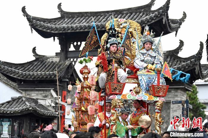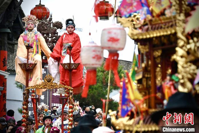 中新網(wǎng)寧波2月23日電 (方堃 蔣攀 駱佳明 葛鵬超)2月23日正值農(nóng)歷正月十四,浙江省寧波市寧海縣前童鎮(zhèn)鼓亭館廣場上,人聲鼎沸,熱鬧非凡,一場延續(xù)百年的民俗活動“前童元宵行會”在這里舉行。