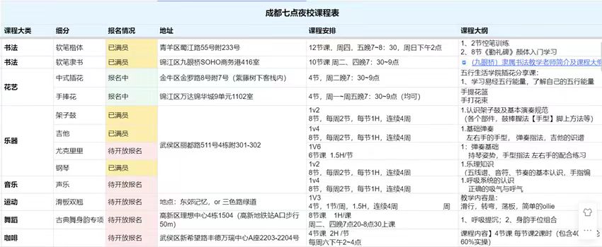 五花八門的副業(yè)她都嘗試過,目前比較穩(wěn)定、收入占比最大的是去年11月開始做的夜校。那段時間,年輕人上夜校的話題火爆,她發(fā)現(xiàn)成都還沒有,于是第一個在成都建起夜校社群,以組團的人數(shù)優(yōu)勢去找商家談低價課,類似于興趣班的拼多多,目前社區(qū)差不多有5000人。