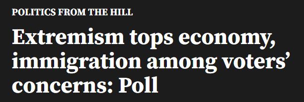 美民調(diào):政治極端主義已成為美國(guó)選民擔(dān)心的首要問(wèn)題 超過(guò)經(jīng)濟(jì)和移民