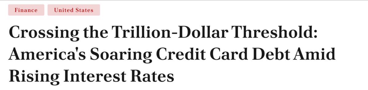 另據(jù)美國媒體BNN Breaking網(wǎng)站報道,美國人的信用卡債務(wù)總額累計超過了1萬億美元,創(chuàng)歷史新高。美聯(lián)儲激進的加息措施推動信用卡平均利率大幅增加至22%以上,零售信用卡利息率更是接近驚人的29%。