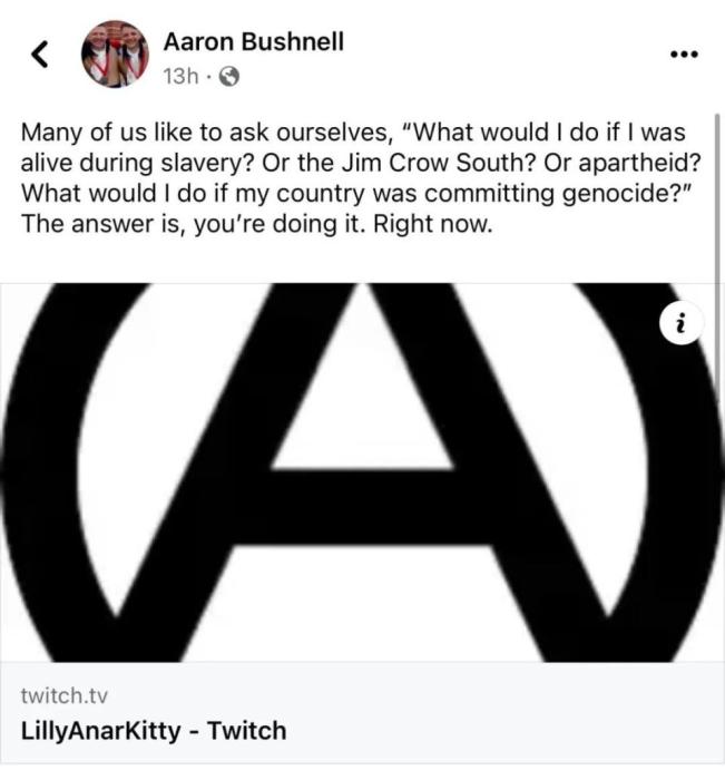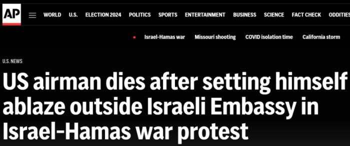 2月25日在以色列駐美大使館門前自焚身亡以抗議美以在加沙進行種族滅絕的25歲現(xiàn)役美空軍亞倫·布什內(nèi)爾,以身證道,成了近期震驚世界的事件。關(guān)于這位義士的生平簡介、抗議行動本身和以后的價值、意義,這兩天想必各位也聽了、看了不少了,今天烏鴉來談?wù)勥@次自焚抗議事件發(fā)生后,也許更加值得細(xì)品的一些狀況。