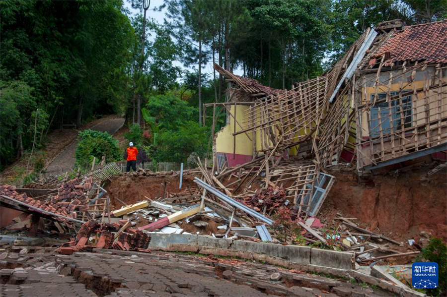 3月4日,一名男子在印度尼西亞西爪哇省的山體滑坡現(xiàn)場(chǎng)查看情況。新華社發(fā)(塞提安賈爾攝)