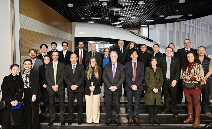 巴西教育訪華團及北京交通大學(xué)代表在校內(nèi)國家重點實驗室內(nèi)留影。 北京交通大學(xué) 供圖