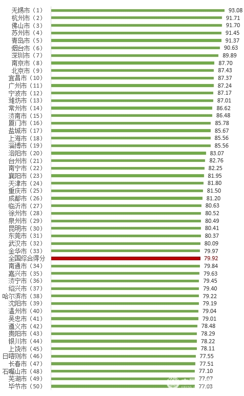 中消協(xié)相關(guān)負(fù)責(zé)人分析指出,100個被測評城市排名總體穩(wěn)定,47個城市滿意度得分提高,城市得分表現(xiàn)和提升數(shù)量均優(yōu)于2022年。除個別城市外,東部和南部城市、經(jīng)濟(jì)發(fā)展水平高的城市得分要高于中西部及經(jīng)濟(jì)發(fā)展一般的城市;東部地區(qū)加速引領(lǐng)消費者滿意度向好提升,中西部地區(qū)加速追趕,城市之間分差有所降低。無錫、杭州、佛山、蘇州、青島、煙臺、深圳、南京、北京、宜昌分列100個城市消費者滿意度綜合得分第一至十名。