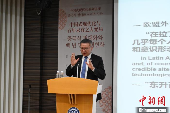 3月13日,復(fù)旦大學(xué)特聘教授、復(fù)旦大學(xué)中國研究院院長(zhǎng)張維為以“百年未有之大變局與中國式現(xiàn)代化”為主題在韓進(jìn)行演講。首爾中國文化中心 供圖