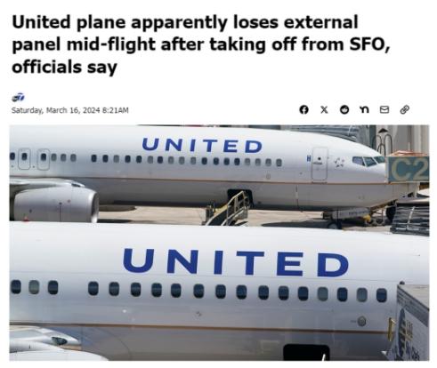 3月,美聯航波音客機又出現了包括引擎起火、輪胎脫落、滑出跑道在內的多起事故。