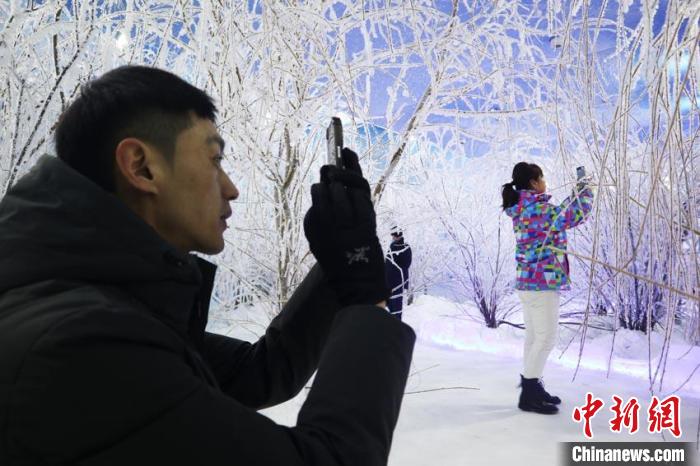 游客在室內(nèi)欣賞霧凇。 蒼雁 攝
