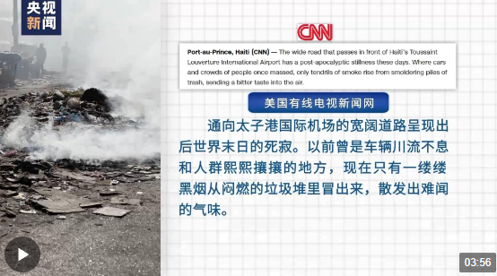 “通向太子港國(guó)際機(jī)場(chǎng)的寬闊道路呈現(xiàn)出后世界末日的死寂。以前曾是車輛川流不息和人群熙熙攘攘的地方,現(xiàn)在只有一縷縷黑煙從悶燃的垃圾堆里冒出來,散發(fā)出難聞的氣味。”美國(guó)有線電視新聞網(wǎng)(CNN)網(wǎng)站18日?qǐng)?bào)道了當(dāng)前海地的混亂局勢(shì)。