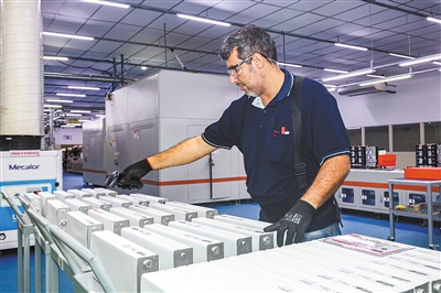 位于巴西亞馬孫州首府馬瑙斯的比亞迪電池工廠主要生產(chǎn)磷酸鐵鋰電池模組,為巴西的電動大巴提供可靠的新能源動力,推動了當?shù)乜沙掷m(xù)能源產(chǎn)業(yè)的發(fā)展,為減少碳排放和環(huán)境保護作出了貢獻。圖為當?shù)貑T工正在掃描電芯條碼。