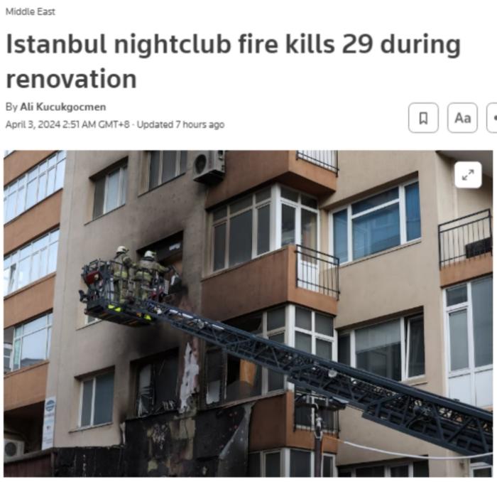 伊斯坦布爾省長(zhǎng)達(dá)武特·居爾表示,死傷者據(jù)信都是裝修相關(guān)人員,火災(zāi)原因正在調(diào)查中。
