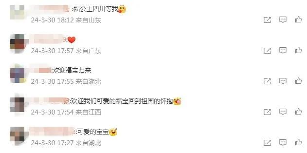中新網4月3日電(甘甜)“歡迎我們可愛的福寶回到祖國的懷抱!”“福公主四川等我!”“福寶一定要幸福啊……”