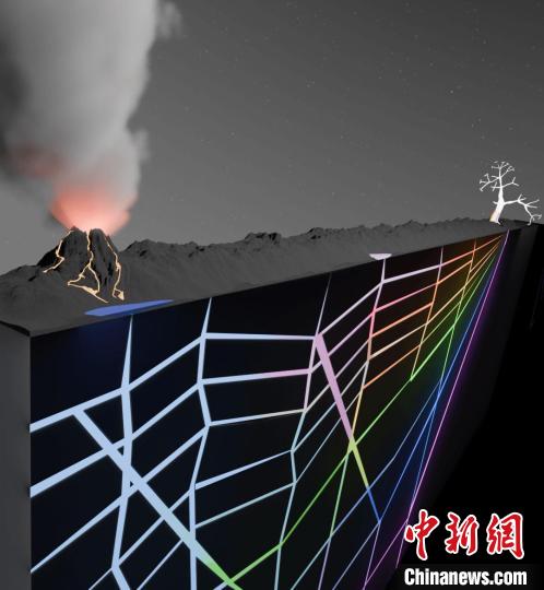 本次研究示意圖:由相互連接的巖石裂縫組成的地下網(wǎng)絡(luò),在熱流的推動(dòng)下積累并富集了生命起源前的化合物,從而促進(jìn)了生命出現(xiàn)的早期化學(xué)過程(圖片來自Christof B. Mast)。施普林格·自然/供圖