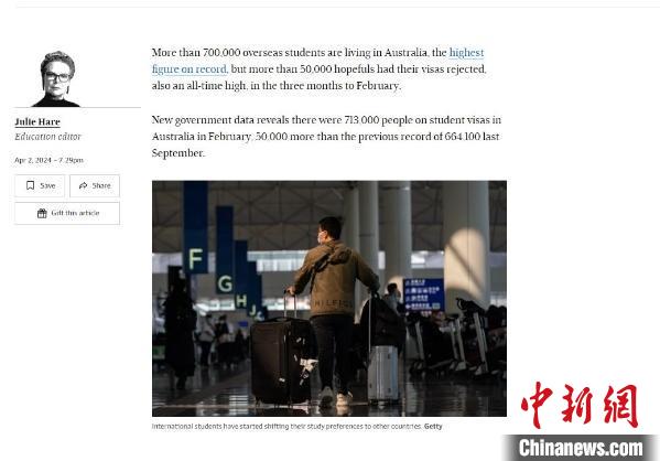 澳大利亞政府最新數(shù)據(jù)顯示,截至今年2月的三個(gè)月內(nèi),有超過(guò)5萬(wàn)名申請(qǐng)簽證的留學(xué)生被拒。圖片來(lái)源于《澳大利亞金融評(píng)論》網(wǎng)站截圖。
