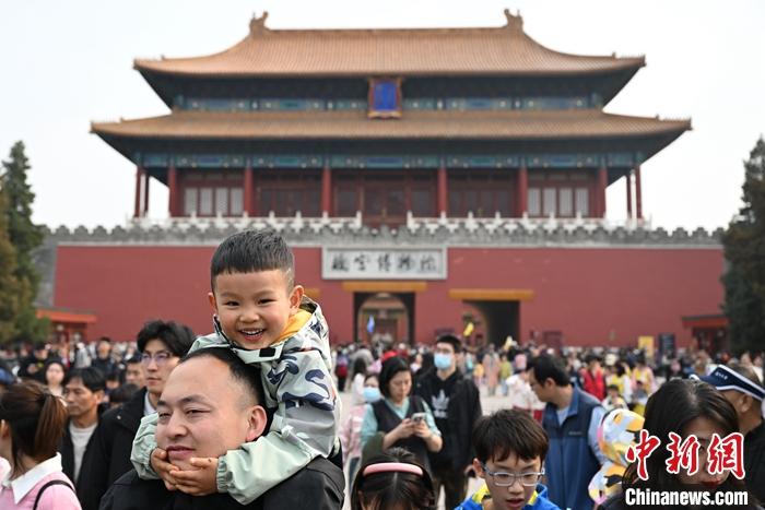 4月4日,游客走出北京故宮博物院神武門。 中新社記者 田雨昊 攝