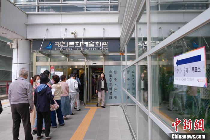 韓國第22屆國會議員選舉4月10日舉行,各政黨候選人將角逐國會300個議席。圖為選民排隊進(jìn)入首爾市廣津區(qū)一處投票站。中新社記者 劉旭 攝