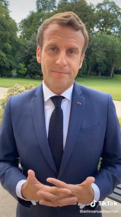 說到TikTok的“資深用戶”,不得不提法國總統(tǒng)馬克龍。他的首個(gè)TikTok視頻發(fā)布于2020年7月,之后又發(fā)布了不少回答提問的“懟臉自拍”,目前在該平臺(tái)擁有420萬粉絲。