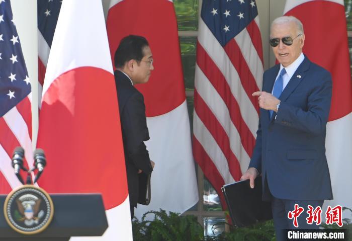 當(dāng)?shù)貢r(shí)間4月10日,美國總統(tǒng)拜登與來美國事訪問的日本首相岸田文雄在白宮舉行會(huì)晤。圖為雙方出席聯(lián)合記者會(huì)。中新社記者 陳孟統(tǒng) 攝