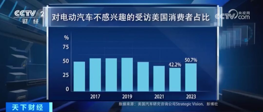 △一項(xiàng)針對(duì)25萬(wàn)美國(guó)汽車消費(fèi)者的調(diào)查顯示,2023年對(duì)于購(gòu)買(mǎi)和租賃電動(dòng)汽車不感興趣的消費(fèi)者占比已經(jīng)超過(guò)了一半,達(dá)到了50.7%。