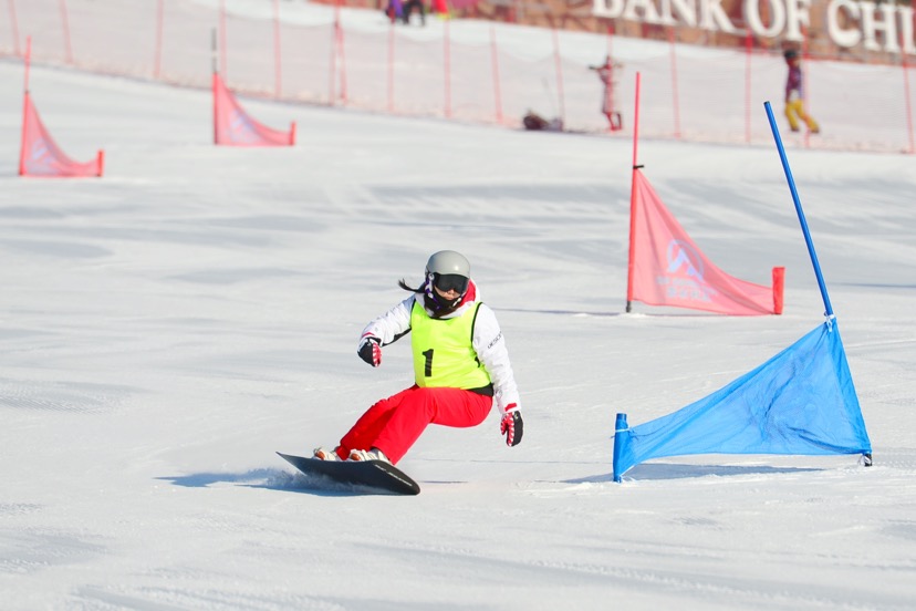 當天上午9點20分,大眾滑雪組單板滑雪大回轉比賽正式開始。賽場上,選手們速度與技巧的完美結合,博得了在場觀眾陣陣喝彩。隨后進行的高山滑雪大回轉比賽也同樣精彩。選手迅速沖出起點,雙手緊握雪杖用力后撐,加速向前滑行,靈巧地在賽道上轉變滑行方向,從一個個旗門中輕巧地回轉而過,每一次急停和回轉,都濺起一簇簇潔白的雪花。