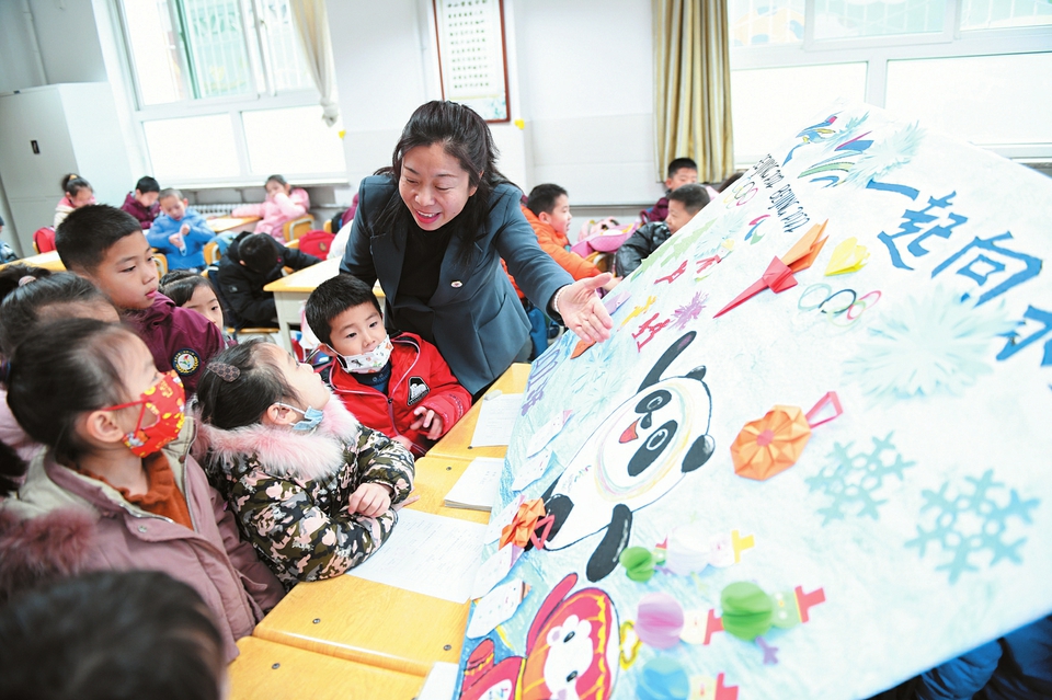 1月6日,太原市第二實(shí)驗(yàn)小學(xué),孩子們?cè)谂c老師的互動(dòng)中學(xué)習(xí)知識(shí)。該校積極響應(yīng)“雙減”政策,為一、二年級(jí)學(xué)生開展“巧娃迎冬奧”等主題綜合素質(zhì)大比拼,讓孩子們?cè)趧?dòng)手、動(dòng)腦、小組合作中輕松快樂(lè)地開展自主、合作、探究性學(xué)習(xí)。(記者阮洋攝)