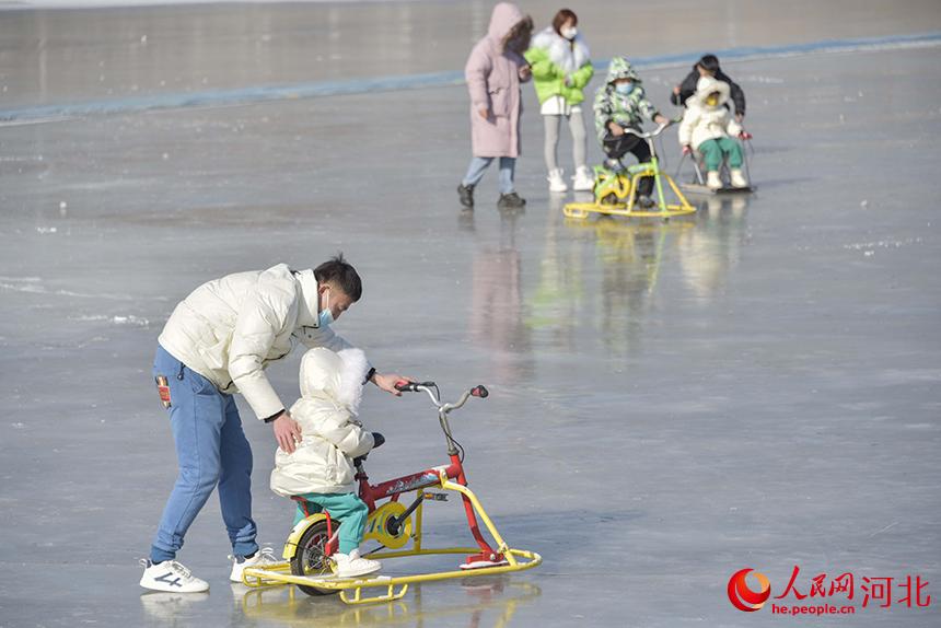 游客在遵化市山里各莊村滑冰場(chǎng)游玩。 張旭攝