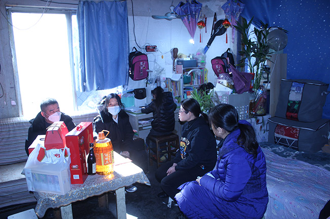 2022年1月24日,年關(guān)將至,氣溫驟降。濟南市中區(qū)人民法院少審?fù)サ姆ü賯冊诶罱ラL的帶領(lǐng)下,踩著厚厚的積雪,提著滿滿的春節(jié)年貨和生活、學(xué)習(xí)用品,來到轄區(qū)內(nèi)一間不足20平方米的簡易出租房內(nèi),看望了從大山深處來濟南生活的秦女士(化名)和她的三個女兒。 6年里的每個春節(jié)前夕,他們都會來看望這個因“案”結(jié)緣,心中時常牽掛的小姐妹家。