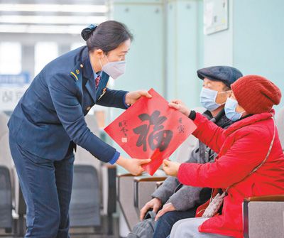 人民日?qǐng)?bào):南京火車站“158”雷鋒服務(wù)站客運(yùn)值班員為旅客送上新春祝福