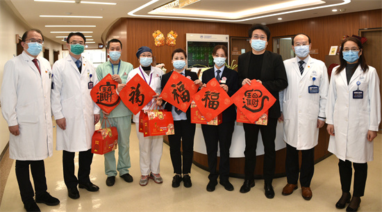 醫(yī)院為她們每個(gè)人都準(zhǔn)備了一份洋溢著濃濃年味的年貨,有魚(yú)有肉,有糖有果,院領(lǐng)導(dǎo)還給這些外地職工送上由醫(yī)院職工書(shū)寫(xiě)的“?!弊?,讓留在上海過(guò)年的她們可以有滋有味地過(guò)年。