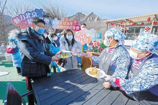 臨近中午,記者們來(lái)到了八達(dá)嶺鎮(zhèn)石佛寺村長(zhǎng)城景觀民宿,與當(dāng)?shù)卮迕瘛⒚袼蘅腿藗円煌w驗(yàn)長(zhǎng)城腳下的中國(guó)年味。