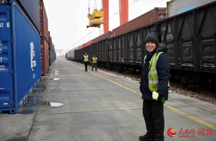人民網(wǎng)石家莊2月2日電 (祝龍超)“再往前一點(diǎn),右邊一點(diǎn),好的。”2月2日9點(diǎn),在地面作業(yè)人員的配合下,坐在30多米龍門(mén)吊駕駛室的滑恒旭穩(wěn)穩(wěn)地操作著龍門(mén)吊車(chē)將一個(gè)20多噸的集裝箱放到了貨運(yùn)專列上。