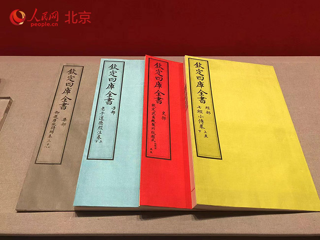 文華殿北側(cè)的文淵閣,作為此次展覽最后一件“展品”,與文華殿展廳結(jié)尾處的《四庫全書》(影印本)遙相呼應(yīng)。人民網(wǎng)記者 鮑聰穎 攝