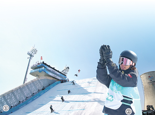 圖①:2月15日,單板滑雪男子大跳臺決賽,蘇翊鳴第二跳確定優(yōu)勢。