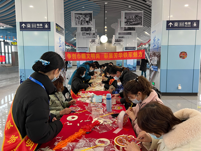 鬧元宵、扎虎燈、猜燈謎……節(jié)日里的杭海城際鐵路各車站熱鬧非凡。在張燈結(jié)彩的海寧海昌路站,工作人員熱情邀請(qǐng)乘客參加猜燈謎活動(dòng)?;顒?dòng)中,乘客們有的凝眉思考,有的積極討論,歡歡喜喜猜著燈謎,為節(jié)日里增添了一份歡樂(lè)和喜悅。海寧鹽官站又是另一番歡樂(lè)的場(chǎng)景,工作人員親自動(dòng)手,制作出一盞盞漂亮的虎燈,乘客們紛紛圍攏過(guò)來(lái)駐足觀看,希望在新的一年里贏得“好兆頭”,現(xiàn)場(chǎng)一片其樂(lè)融融,歡聲笑語(yǔ)。
