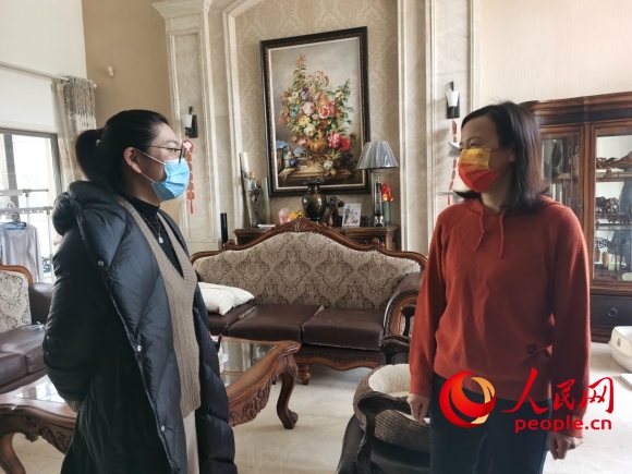 志愿者錢喜紅(右)為社區(qū)工作人員騰出房間休息。人民網(wǎng)記者王繼亮攝