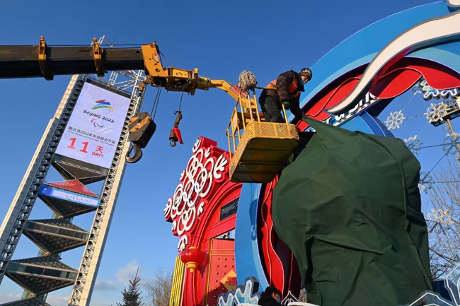 奧園公共區(qū)景觀標識有序轉(zhuǎn)換 北京冬殘奧會景觀26日全部“上線”