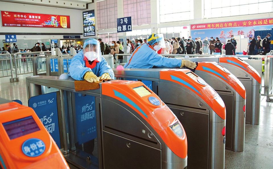 近期,面對學(xué)生流、節(jié)后探親返程流、務(wù)工流“三流”疊加,運(yùn)城北站一手抓疫情防控,一手抓旅客組織,加強(qiáng)候車廳常態(tài)化疫情消殺制度,傾力確保旅客運(yùn)輸平穩(wěn)有序。(王文華攝)
