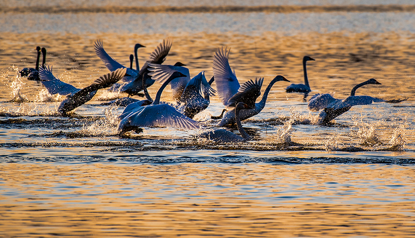 山西萬榮:黃河濕地天鵝曼舞【2】