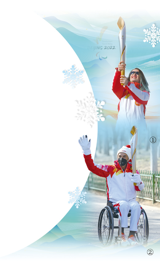 圖①:3月3日,火炬手、國(guó)際殘奧委會(huì)運(yùn)動(dòng)員委員會(huì)委員瑪?shù)倌取P羅尼傳遞火炬。