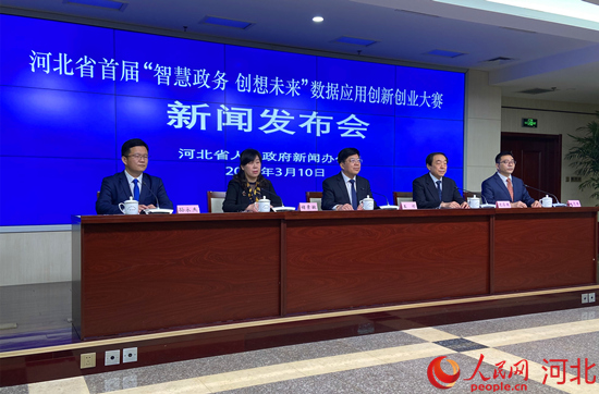 河北省首屆“智慧政務(wù) 創(chuàng)想未來”數(shù)據(jù)應(yīng)用創(chuàng)新創(chuàng)業(yè)大賽新聞發(fā)布會現(xiàn)場。 人民網(wǎng) 付兆颯攝