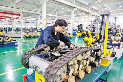 中信重工開誠智能裝備有限公司組裝人員正在組裝消防機器人底盤。 中信重工開誠智能裝備有限公司供圖