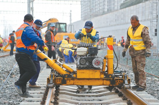 昨天上午,豐臺站改建工程計(jì)算機(jī)聯(lián)鎖封鎖施工、撥線施工開始,七百余名施工人員同時作業(yè)保障工程順利完成。本報記者 安旭東攝