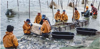 北塘寧車沽萬畝魚塘出魚 圖片由北塘街道提供