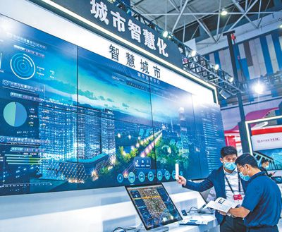 在貴州貴陽舉辦的中國國際大數(shù)據(jù)產(chǎn)業(yè)博覽會(huì)上,參會(huì)者了解智慧城市治理中心。