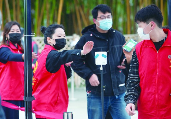 連日來,在金華市區(qū)市民廣場核酸采樣點,公益組織的志愿者們利用自己的休息時間,在現(xiàn)場協(xié)助醫(yī)務人員引導市民有序測溫,出示健康碼和行程卡,同時提醒市民戴好口罩,保持一米距離。據(jù)了解,這些志愿者來自各行各業(yè),他們當中有民營企業(yè)主、企事業(yè)單位工作人員、教師、出租車司機、退休人員等,他們在各個核酸采樣點義務值守,為疫情防控出一份力。(時寬兵)