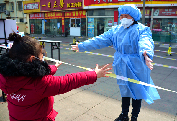 3月4日晚,連云港市海州區(qū)發(fā)現(xiàn)1例陽性人員,港城疫情防控阻擊戰(zhàn)就此打響。5日早上6點半,孫麗群接到參與核酸檢測服務(wù)工作的通知,第一時間將讀小學(xué)的女兒送到姐姐家照顧,轉(zhuǎn)頭便投入到疫情防控工作中去。相隔十幾天不見,女兒在做核酸檢測時見到了媽媽,思念的淚水瞬間“決堤”。