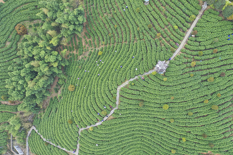 放眼望去,宣城市旌德縣白地鎮(zhèn)一彎彎一排排的茶樹錯(cuò)落有致。江建興攝