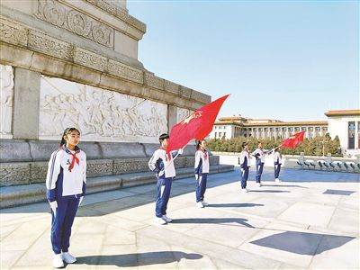 本報(bào)訊(記者 劉婧)昨天上午,來(lái)自北京市京源學(xué)校的24名少先隊(duì)員來(lái)到天安門(mén)廣場(chǎng),站立首都少年先鋒崗。