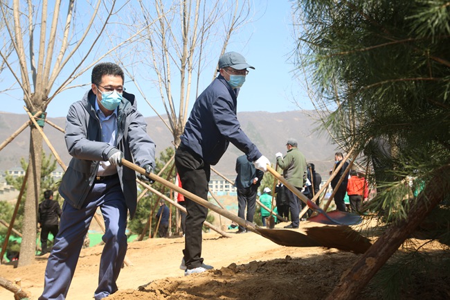 活動中,首都綠化委員會辦公室、石景山區(qū)、駐區(qū)部隊、首鋼集團(tuán)、中鐵建設(shè)集團(tuán)等駐區(qū)企業(yè)有關(guān)負(fù)責(zé)同志60余人參加勞動,種下油松、白皮松、國槐等樹木200余株。
