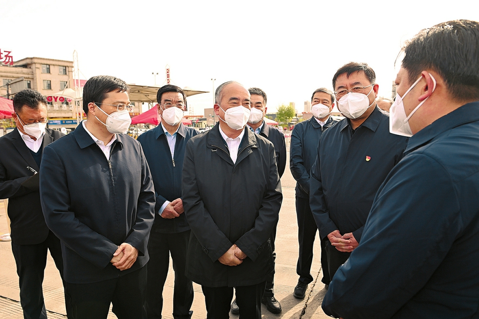 四月十二日,省委書記、省新冠肺炎疫情防控工作領導小組組長林武在太原繞城高速東社卡口調研屬地第一時間第一落點管控情況。記者史曉波攝