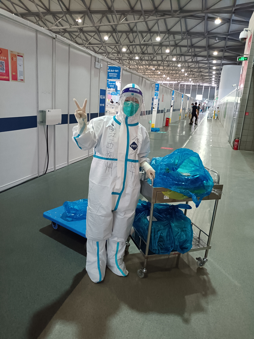 4月7日,張沖華隨隊(duì)正式進(jìn)駐上海新國際博覽中心方艙醫(yī)院N3艙,主要負(fù)責(zé)物資補(bǔ)發(fā)和護(hù)理,每天進(jìn)艙時(shí)間是4小時(shí),加上交接班時(shí)間,每天需要忙碌近八小時(shí)。